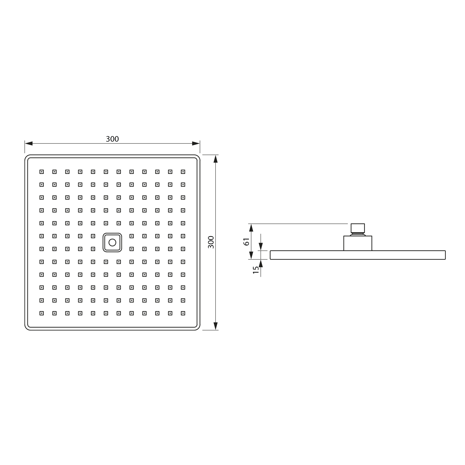 AQUALINE fejzuhany, 300x300 mm, ABS/matt fekete (SC174B)