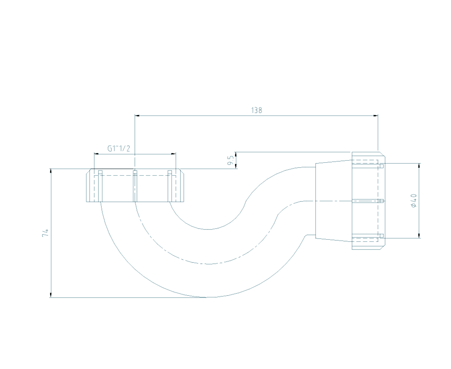 Szifon anyával, U típus, 1 1/2“, mag,:65mm (WJ607)