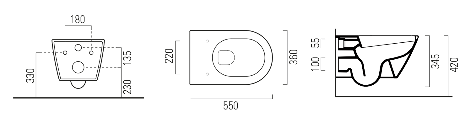The shape of the bowl allows for efficient and effective flushing with less water, thus saving the environment and water costs.Economical flushing can be used with a dual flush cistern, whose drain valve allows the water volume to be set from 2 liters for a small flush and 4 liters for a large flush.