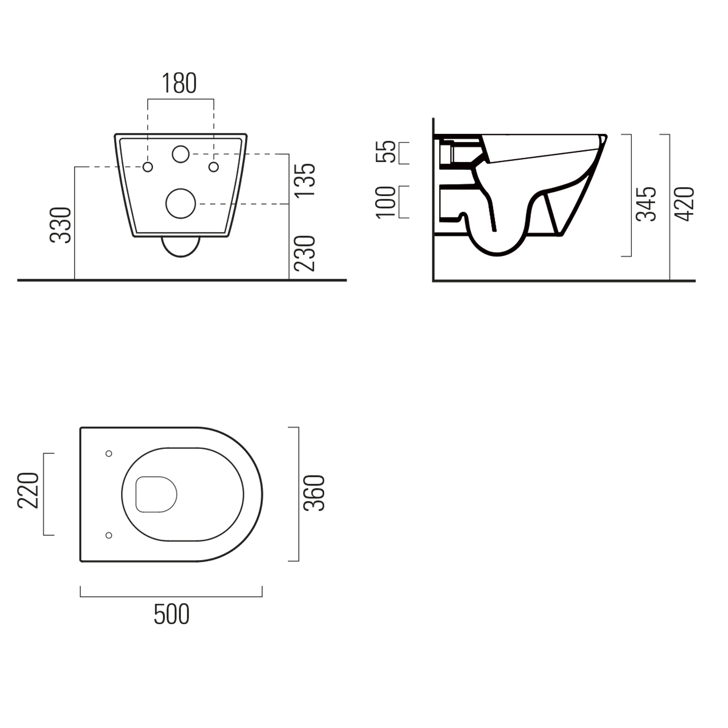 The shape of the bowl allows for efficient and effective flushing with less water, thus saving the environment and water costs.Economical flushing can be used with a dual flush cistern, whose drain valve allows the water volume to be set from 2 liters for a small flush and 4 liters for a large flush.