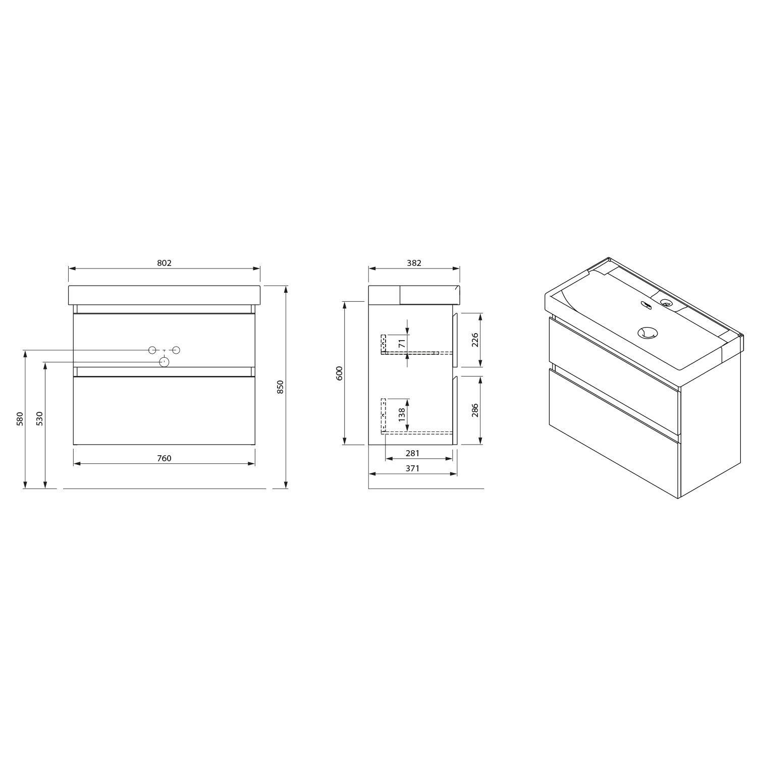 AI680 AQUALINE ALTAIR mosdótartó szekrény, 77,5x60x45cm, matt fekete