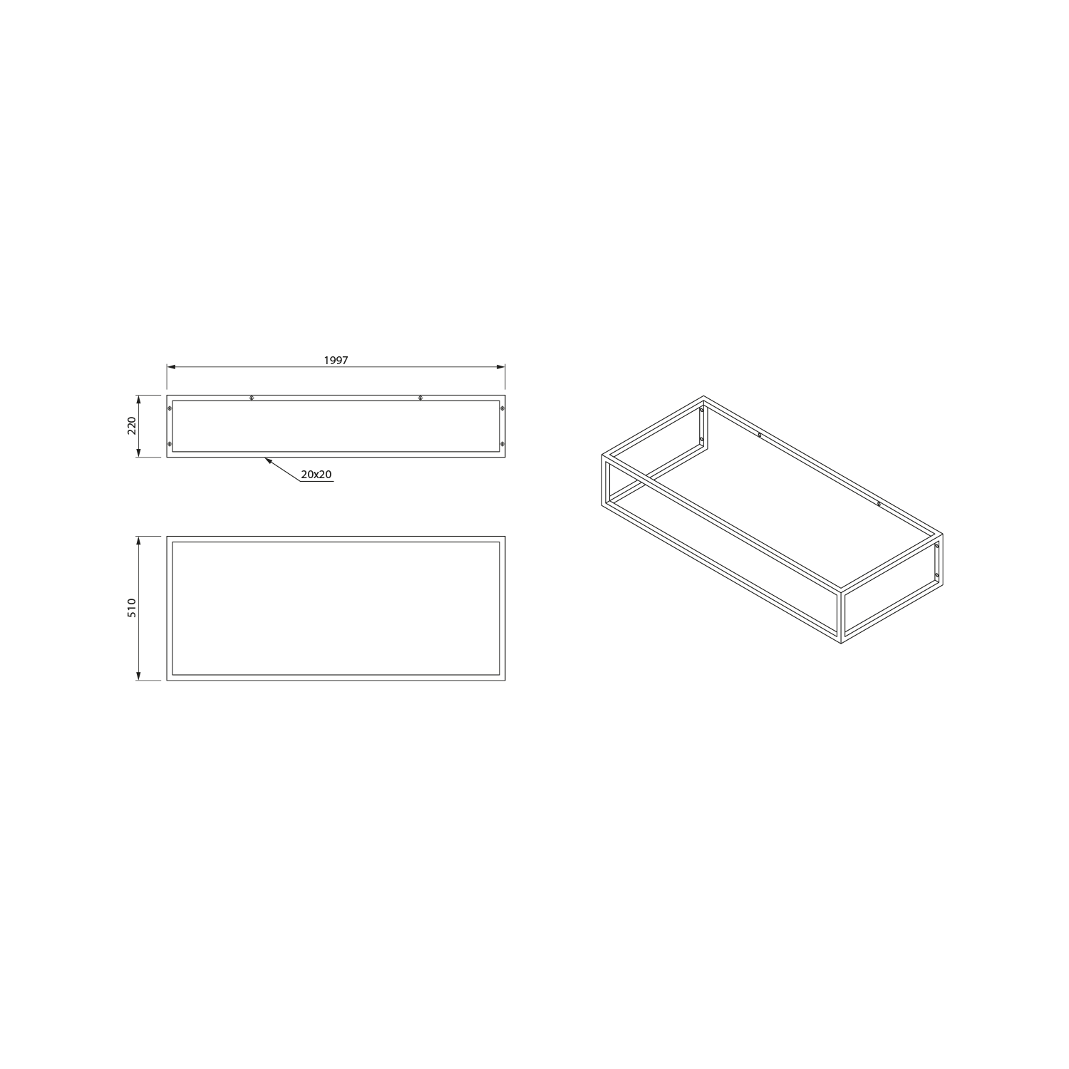 SKA204 SKA mosdótartó keret pult alá, 120x20x46cm, matt fekete