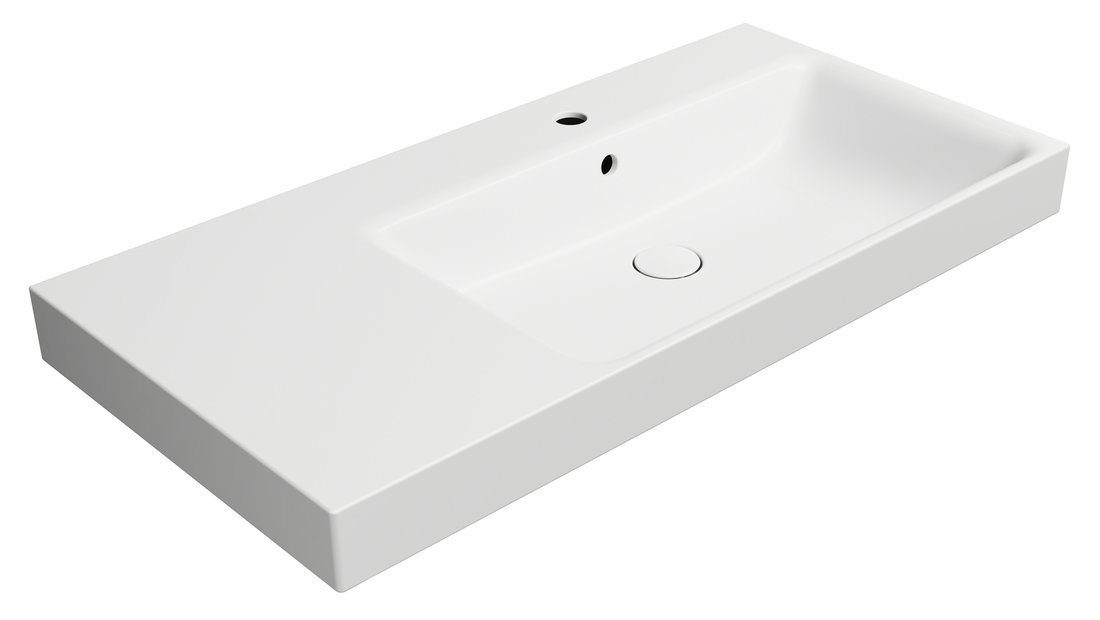 NUBES keramické umyvadlo 100x50cm, s odkládací plochou vlevo, bílá mat (9628109)