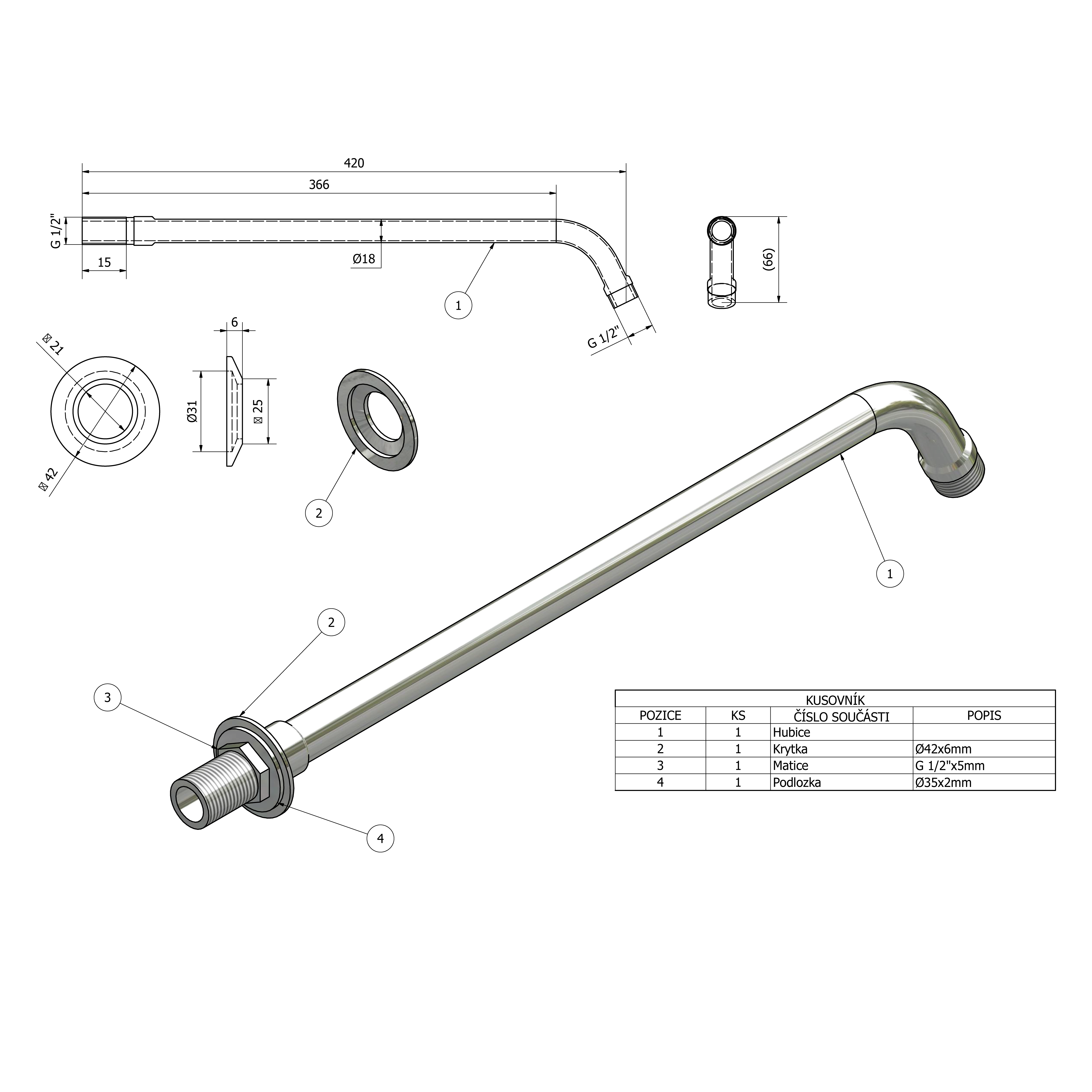 AQUALINE Fejzuhany tartókar, króm (T04)