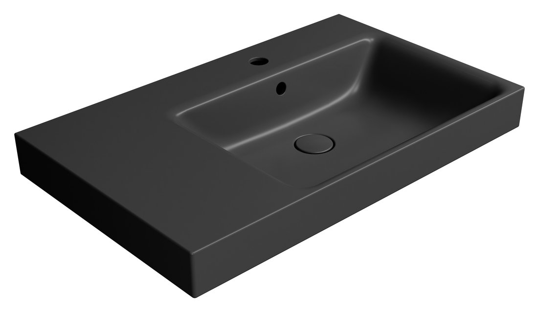 NUBES keramické umyvadlo 80x50cm, s odkládací plochou vlevo, černá mat (9630126)