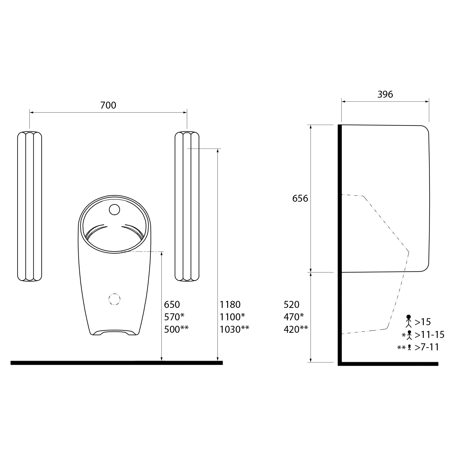 ISVEA piszoár térelválasztó, kerámia, 39x66cm (10NF93001)