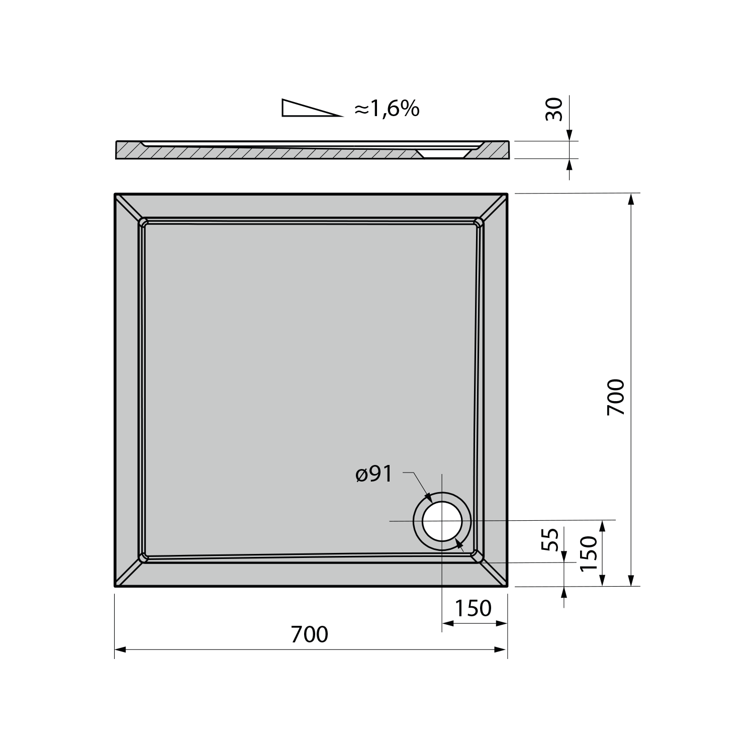 11091 POLYSAN KARIA öntöttmárvány zuhanytálca, 80x70x3cm