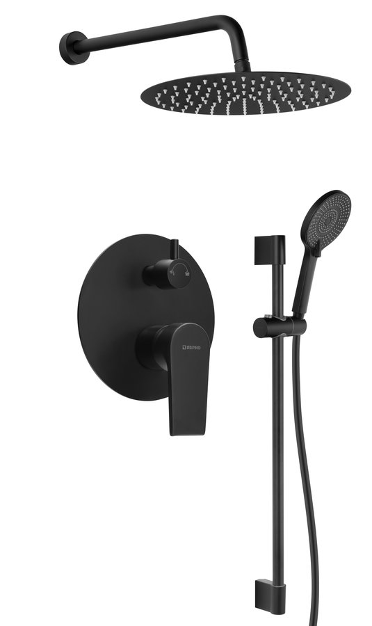 KAI falba süllyesztett zuhanycsaptelep, 2-irányú váltóval, zuhanyszettel, fejzuhannyal, zuhanyrúddal, matt fekete (KA43/15-04)
