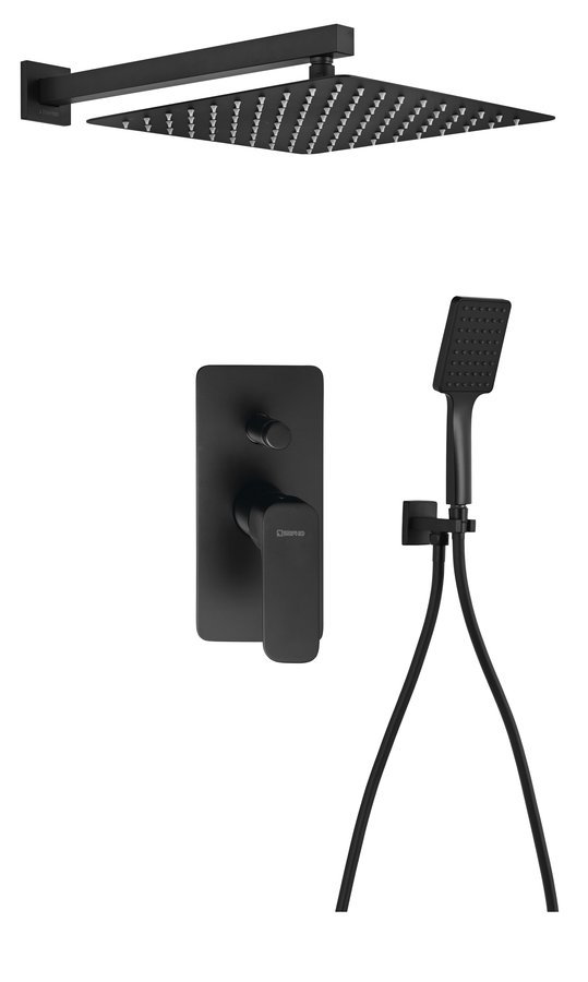 PY42/15-01 SPY falba süllyesztett zuhanycsaptelep, 2-irányú váltóval, zuhanyszettel, fejzuhannyal, fekete