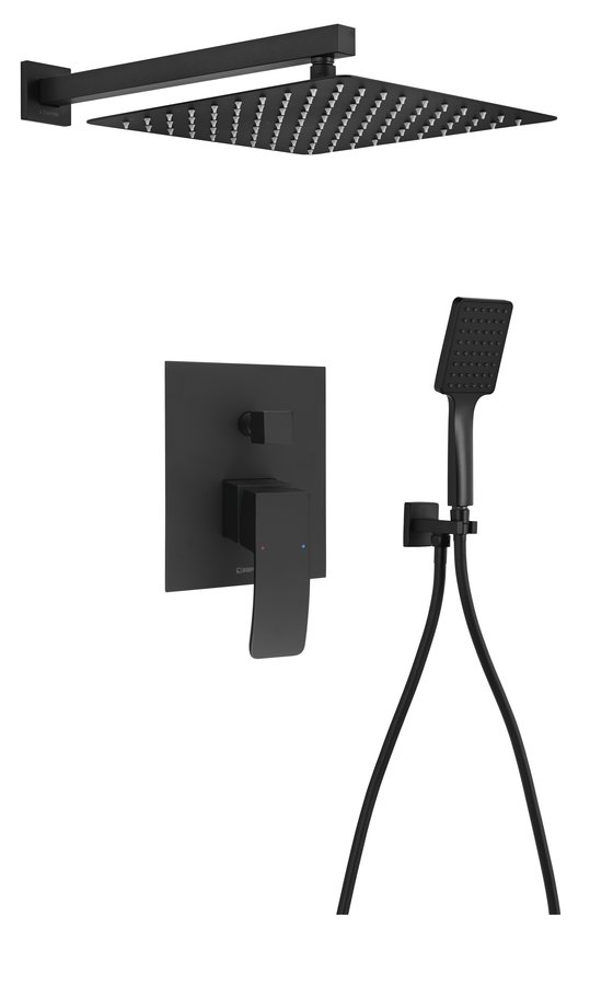 1101-42B-01 GINKO falba süllyesztett csaptelep, 2-irányú váltóval, zuhanyszettel, fejzuhannyal, matt fekete
