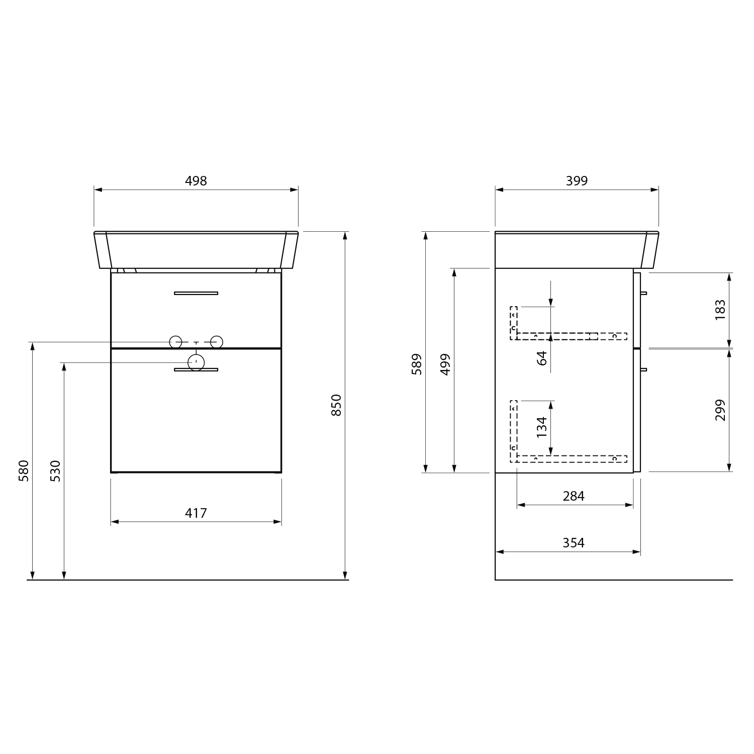 56378 AQUALINE ZOJA mosdótartó szekrény, 2 fiókos, 56x50x35,6cm, fehér