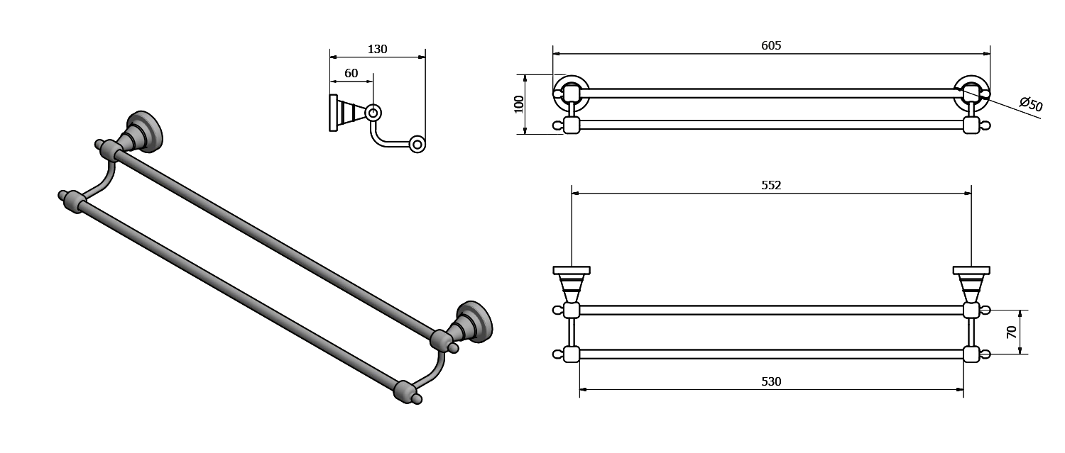 1317-11 DIAMOND dupla törölközőtartó, 60cm, króm