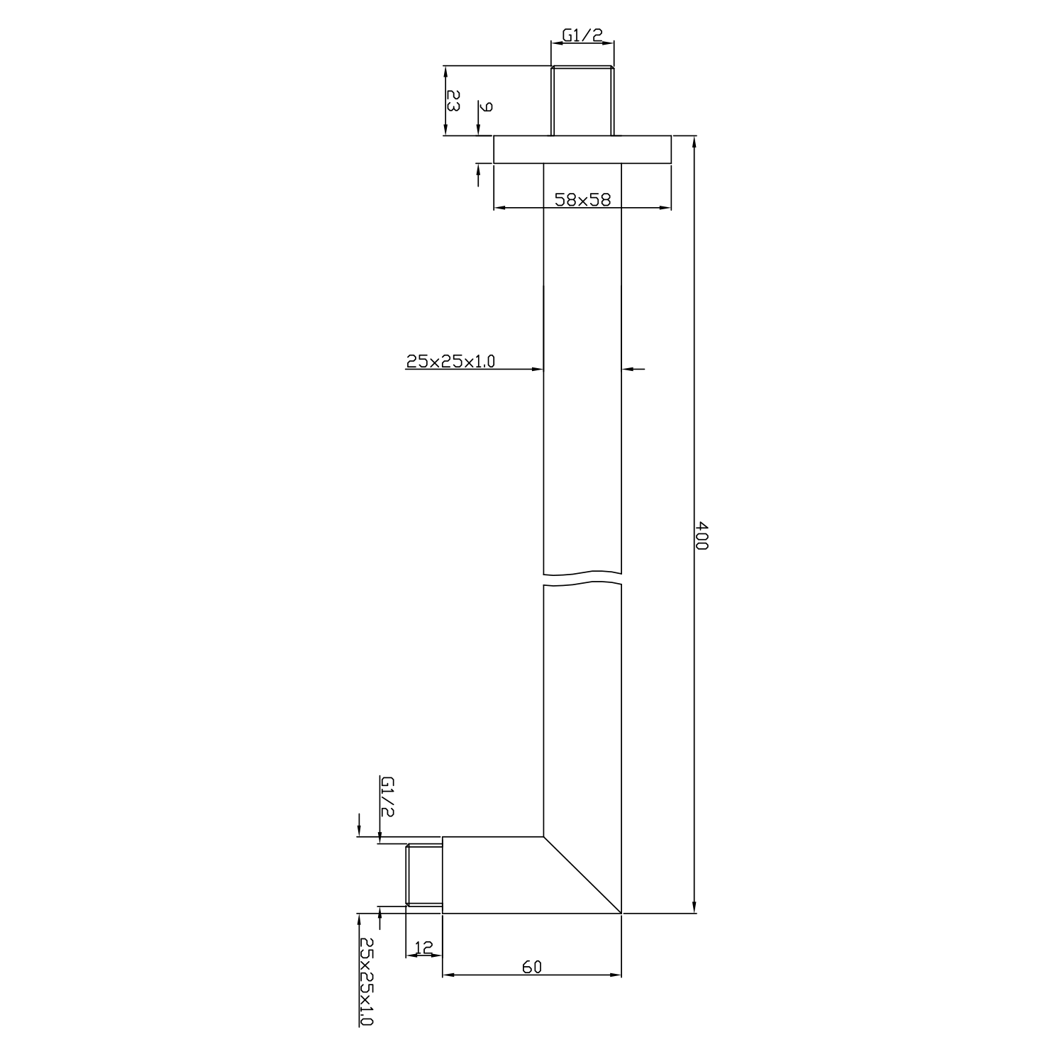 1203-05 fejzuhany, szögletes, 25x25cm, króm