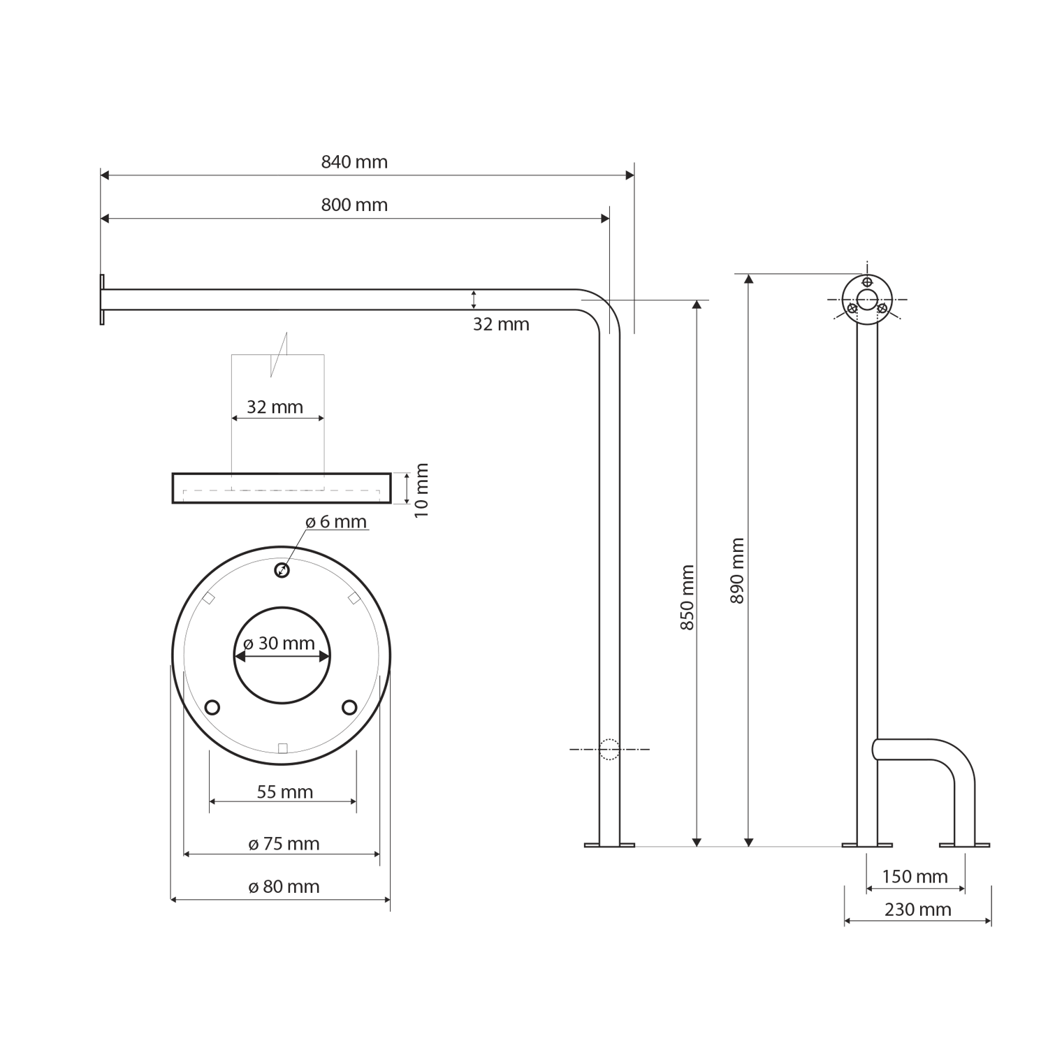 BEMETA HELP Kapaszkodó, balos, 840x890x230mm, fehér (301112134) (XH526W)