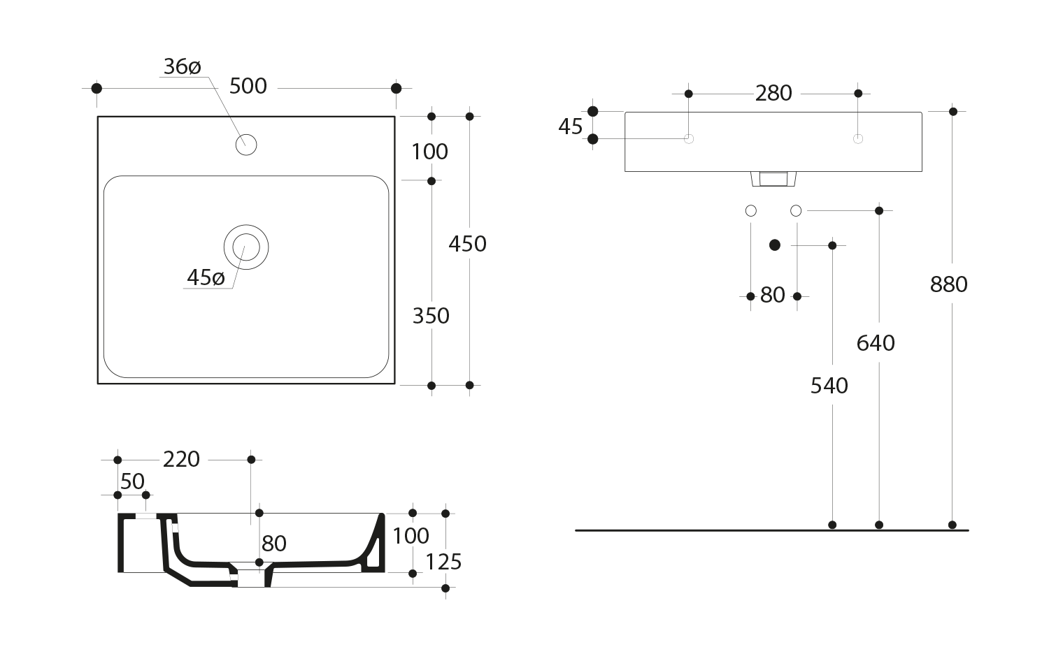 354401 KERASAN CENTO pultra szerelhető kerámiamosdó túlfolyó nélkül, 45x45cm