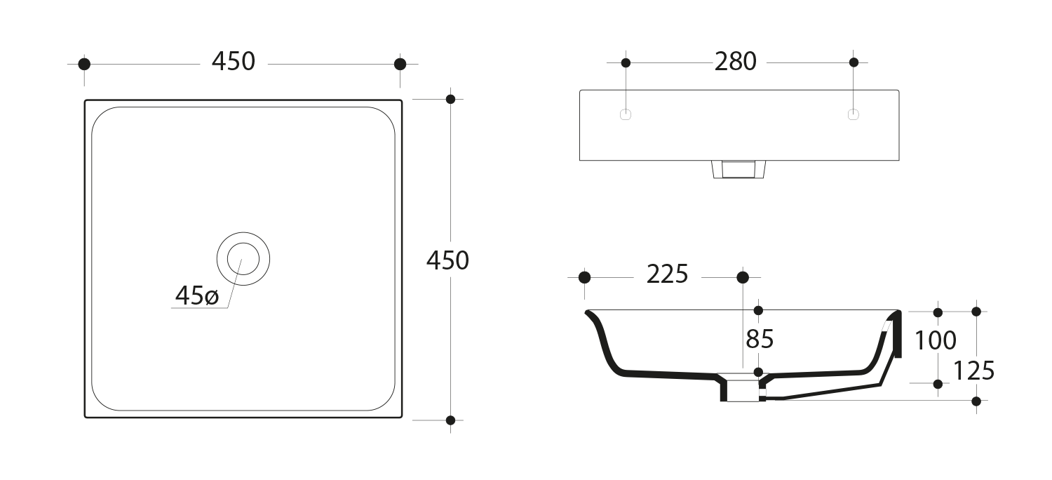 KERASAN CENTO pultra szerelhető kerámiamosdó túlfolyó nélkül, 45x45cm (354401)