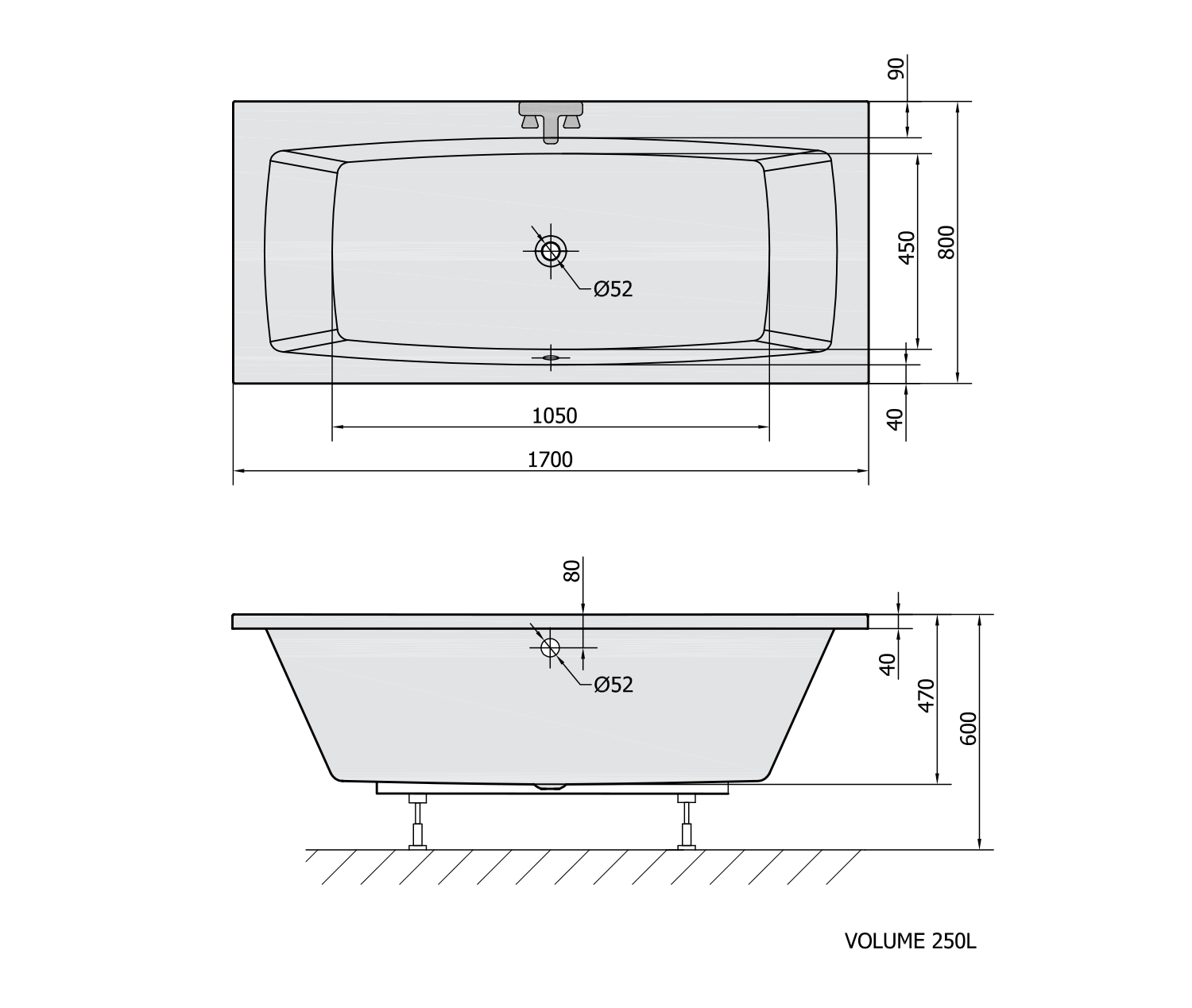 FR17080 POLYSAN lábszerkezet kádhoz, 170x80cm (KVADRA 170)