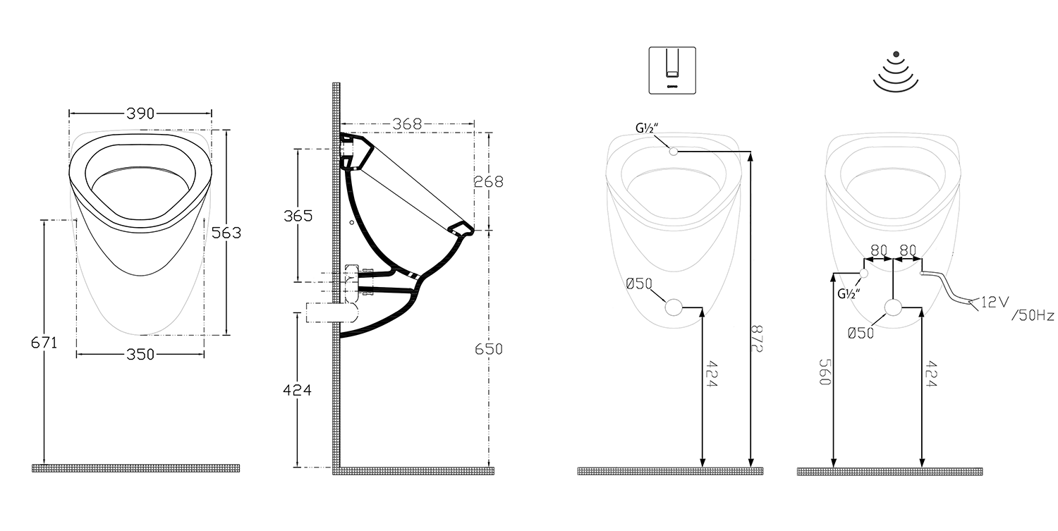 PS862 Szenzoros öblítőmechanika piszoárhoz, 6V DC