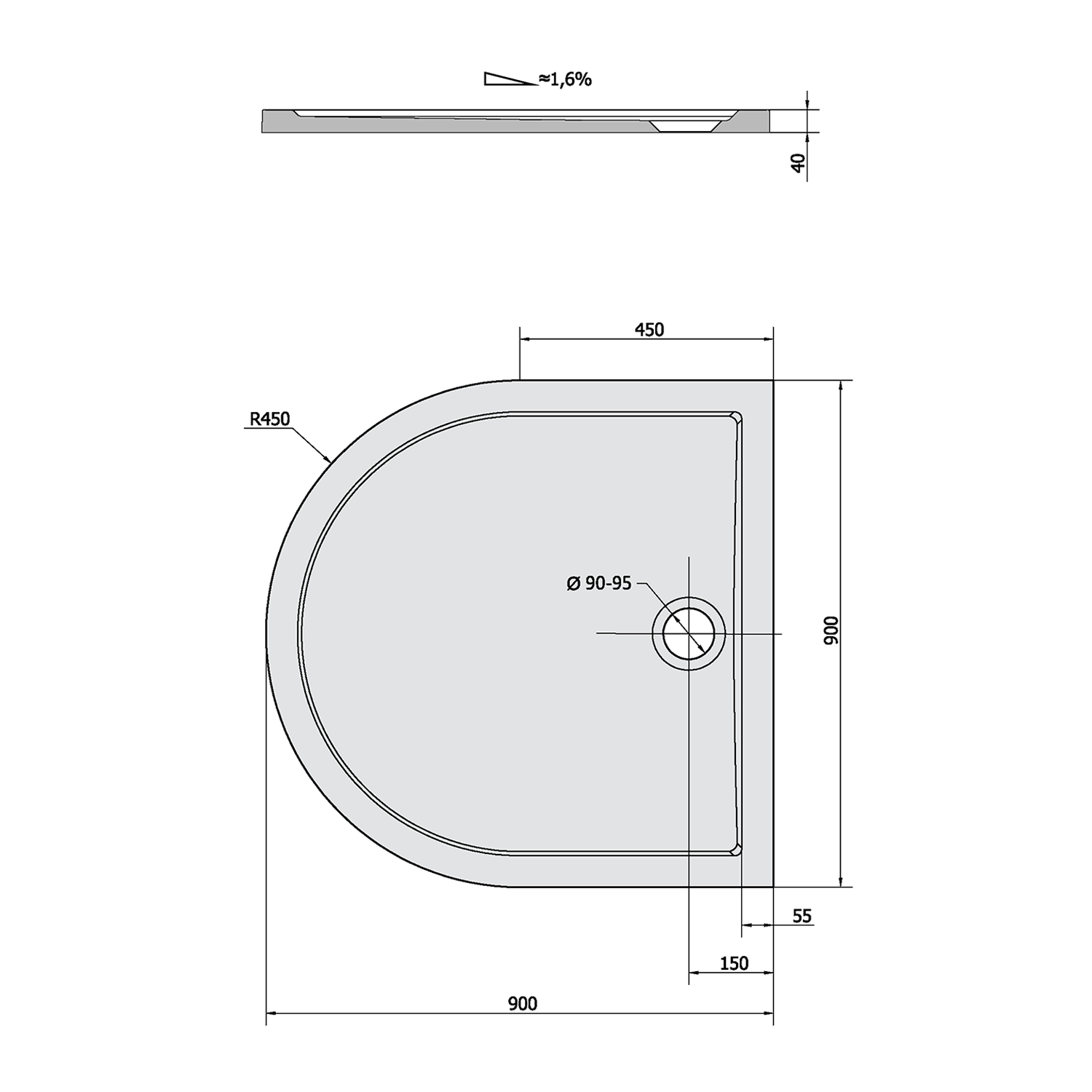 72890 POLYSAN RENA öntöttmárvány zuhanytálca, 90x80x4cm, R550, bal
